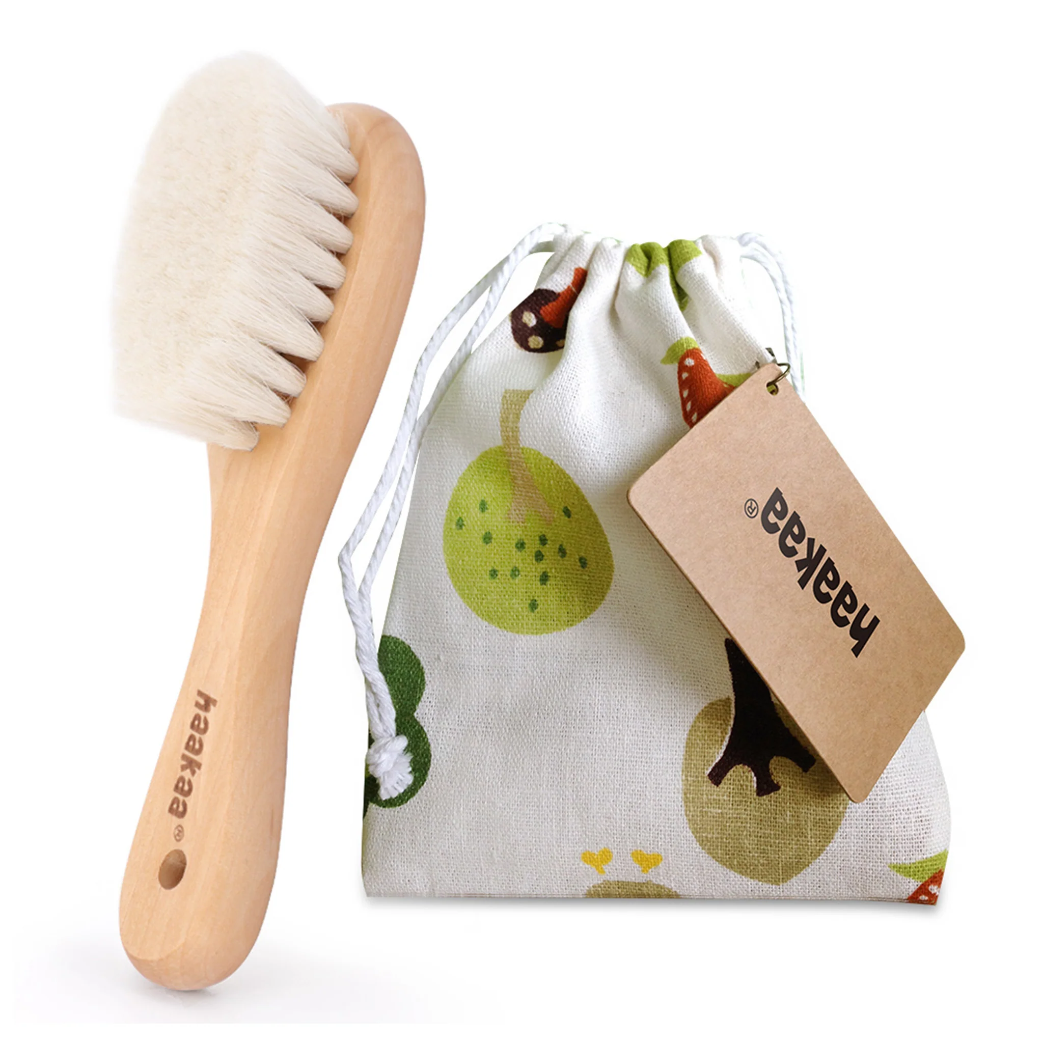 Haakaa Goat Wool Wooden Baby Hair Brush & Comb Set