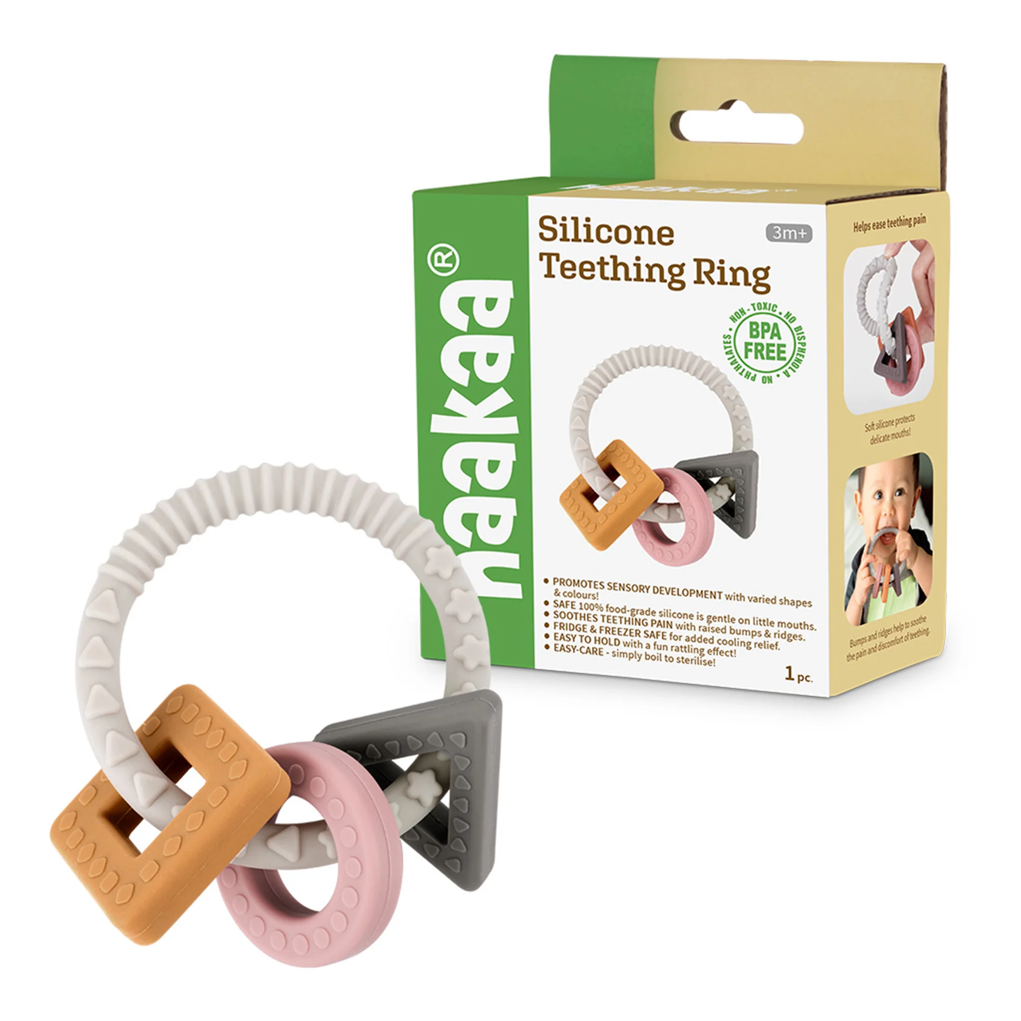The Silicone Teething Ring is the perfect tool for little ones who are starting to teethe.