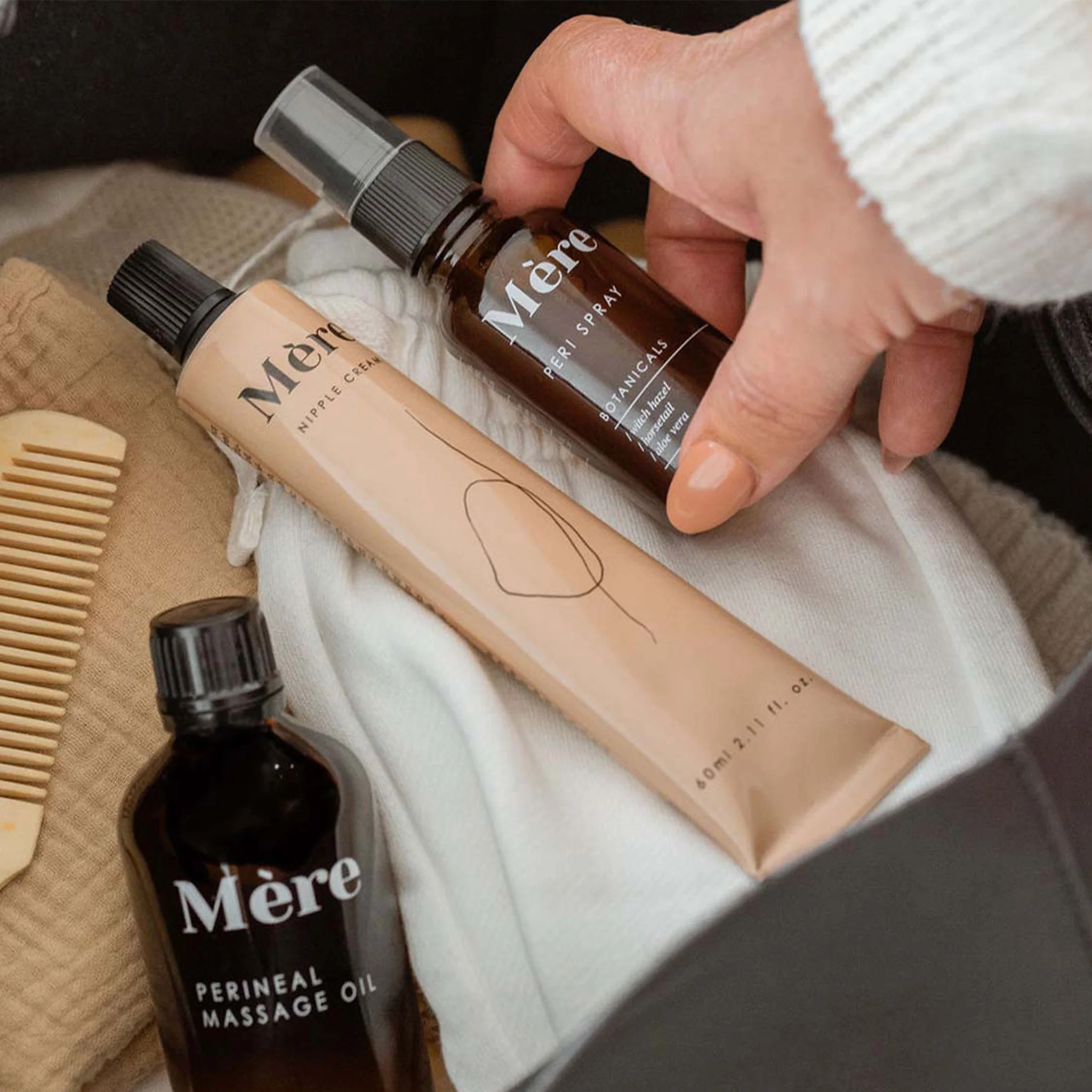 This beautifully formulated, non-greasy formulation of moisturising active botanicals naturally soothes, heals and hydrates. Mère Nipple Cream has no added fragrances, ensuring the smell of Mum’s milk isn’t affected. For your convenience, this cream does not need to be removed before a feed.